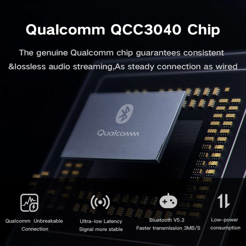 The Qualcomm QCC3040 Chip ensures consistent and lossless audio streaming, while the ultra-low latency signal guarantees a steady connection comparable to wired alternatives.