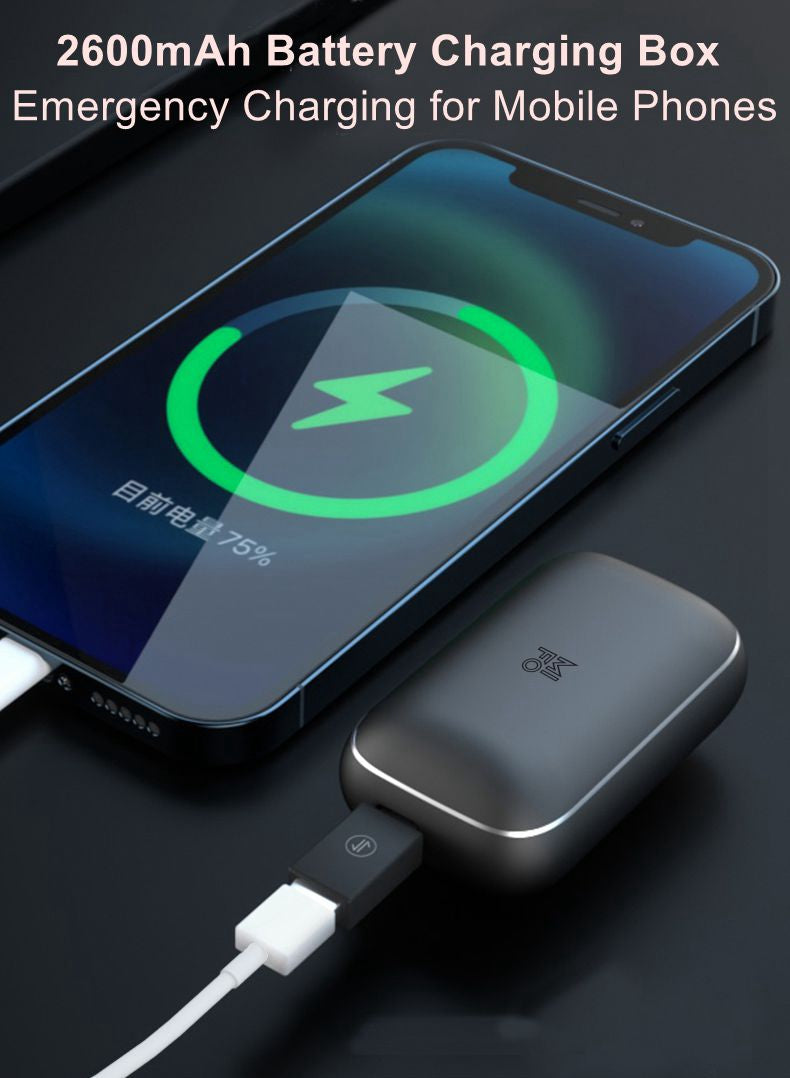 The charging case serves as a convenient storage and charging solution for the earbuds. It features a 2600mAh battery, allowing you to charge the earbuds up to 15 times for a total of 150 hours of battery life. The case also doubles as a power bank, allowing you to charge your mobile devices on the go.
