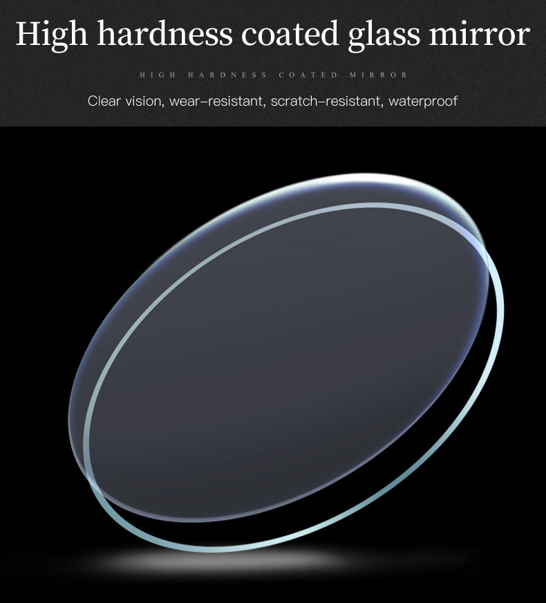 The coated glass mirror offers a clear and scratch-resistant view of the time.