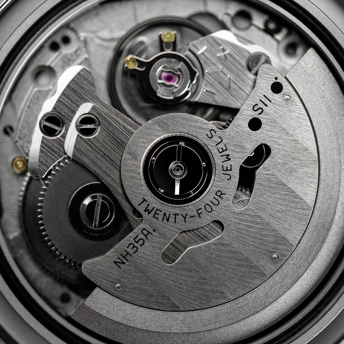 Powered by the reliable NH35A automatic mechanical movement, the watch offers features like a complete calendar, a frequency of 21,600 times per hour, and a 41-hour energy reserve. Its bidirectional self-winding mechanism ensures accurate timekeeping for the connoisseur.