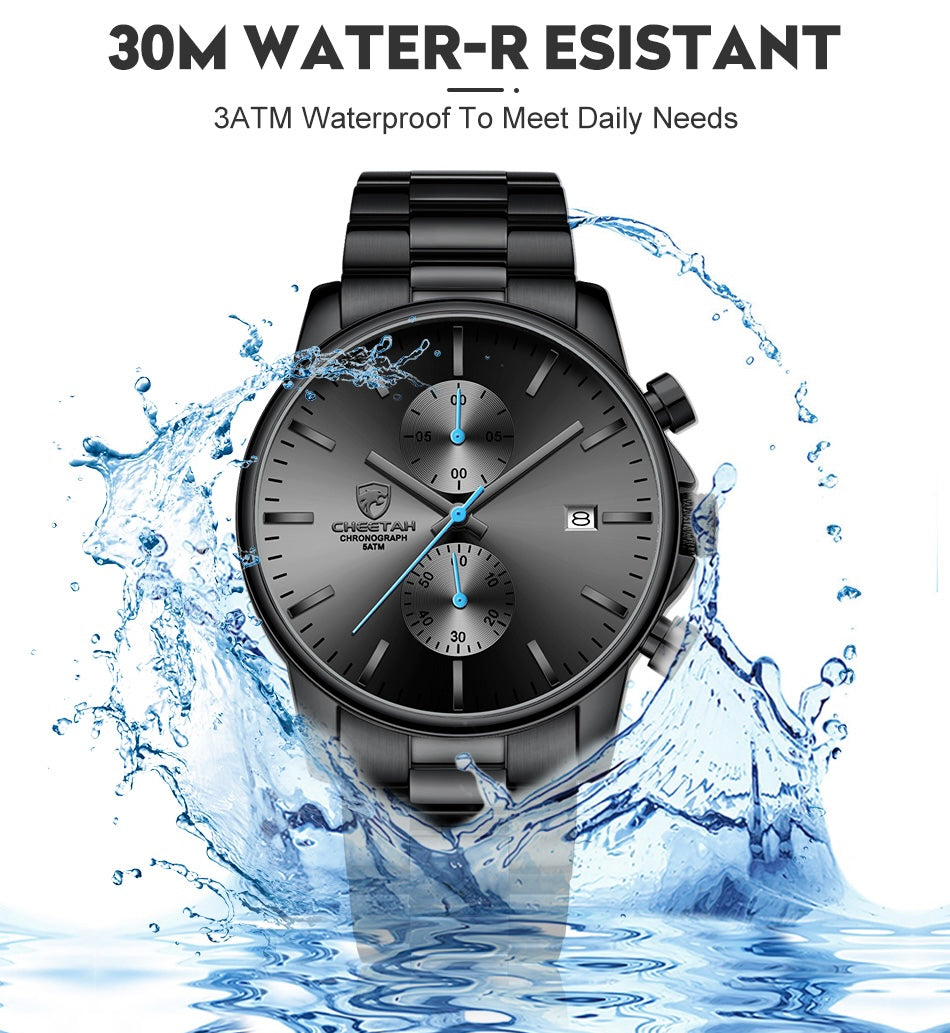Introducing the CHEETAH Sports Watch for Men - the ultimate blend of luxury, style and functionality. With a water-resistant design up to 30 metres, this timepiece is perfect for the active man who wants to stay on top of his game, no matter where his adventures take him.