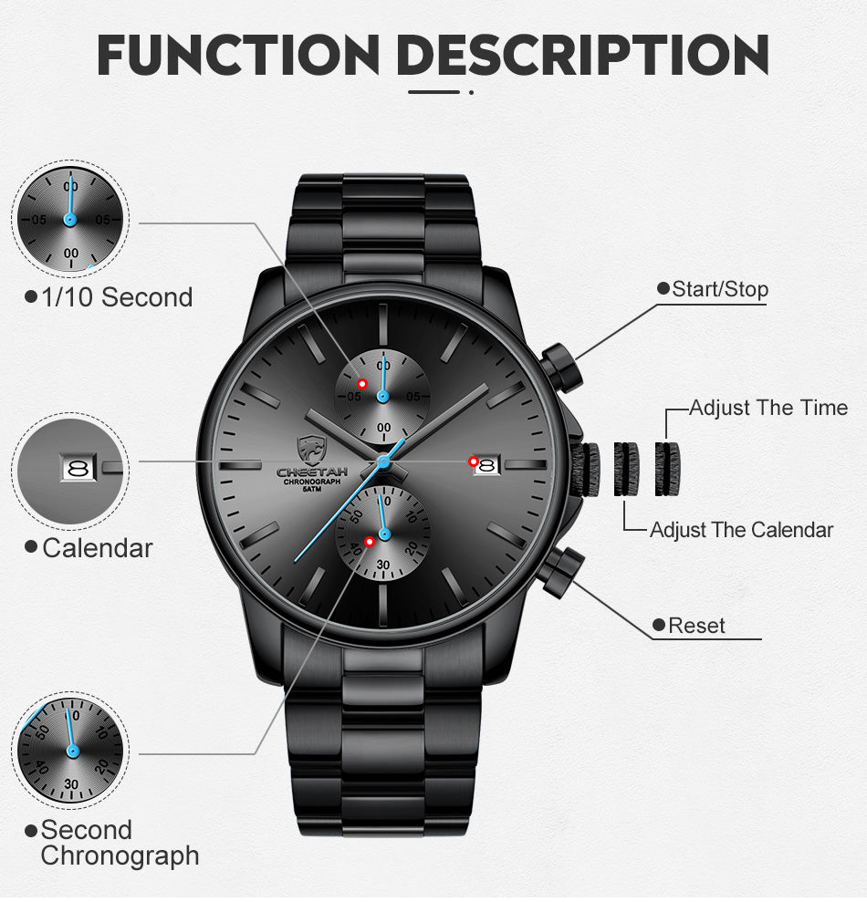 Introducing the CHEETAH Sports Watch for Men - the ultimate blend of luxury, style and functionality.