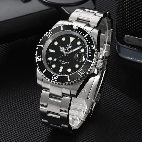 Meet the Steeldive 300M, a watch that's as much at home in the depths of the ocean as it is on your wrist at a formal event. With a water resistance of 30Bar (300 meters), this watch is ready for any diving adventure while maintaining a sleek, sporty style.